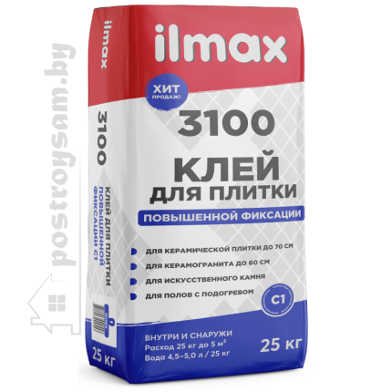 Клей для плитки повышенной фиксации Илмакс 3100, 25 кг