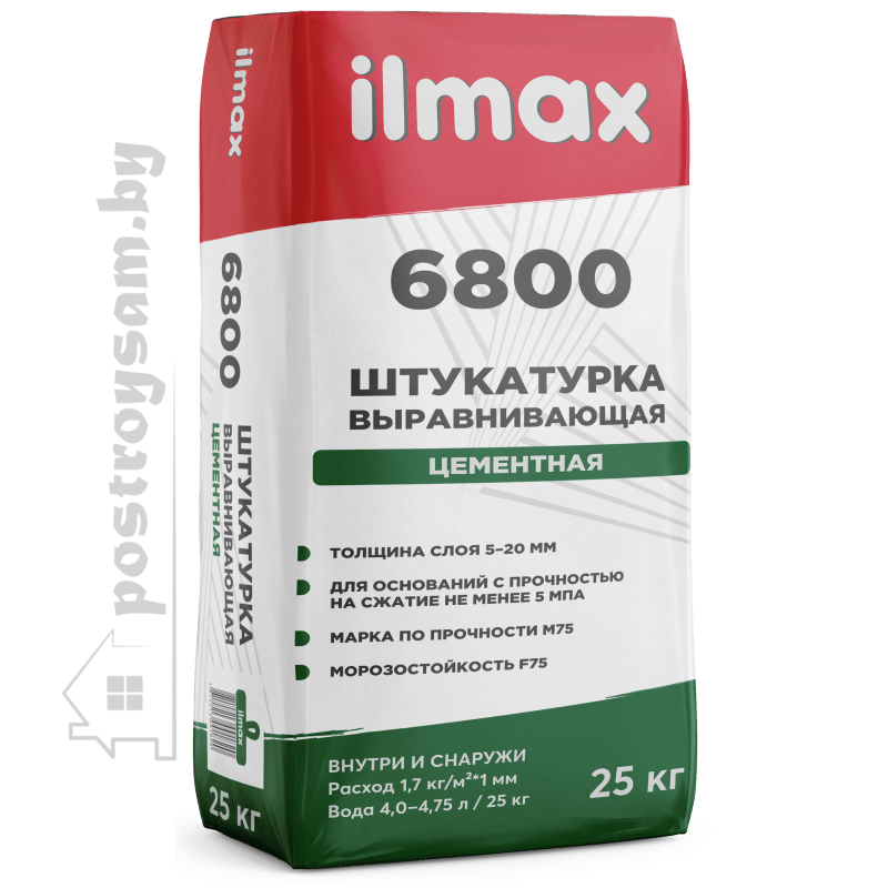 ilmax 6800 – выравнивающая штукатурка на цементном вяжущем с тщательно подобранным фракционным составом песка, проходящим специальную подготовку по сушке и обеспыливанию, устойчива к сползанию и трещинообразованию. Специальные добавки обеспечивают оптимальное рабочее время, а пластичность штукатурки делает её удобной в работе.